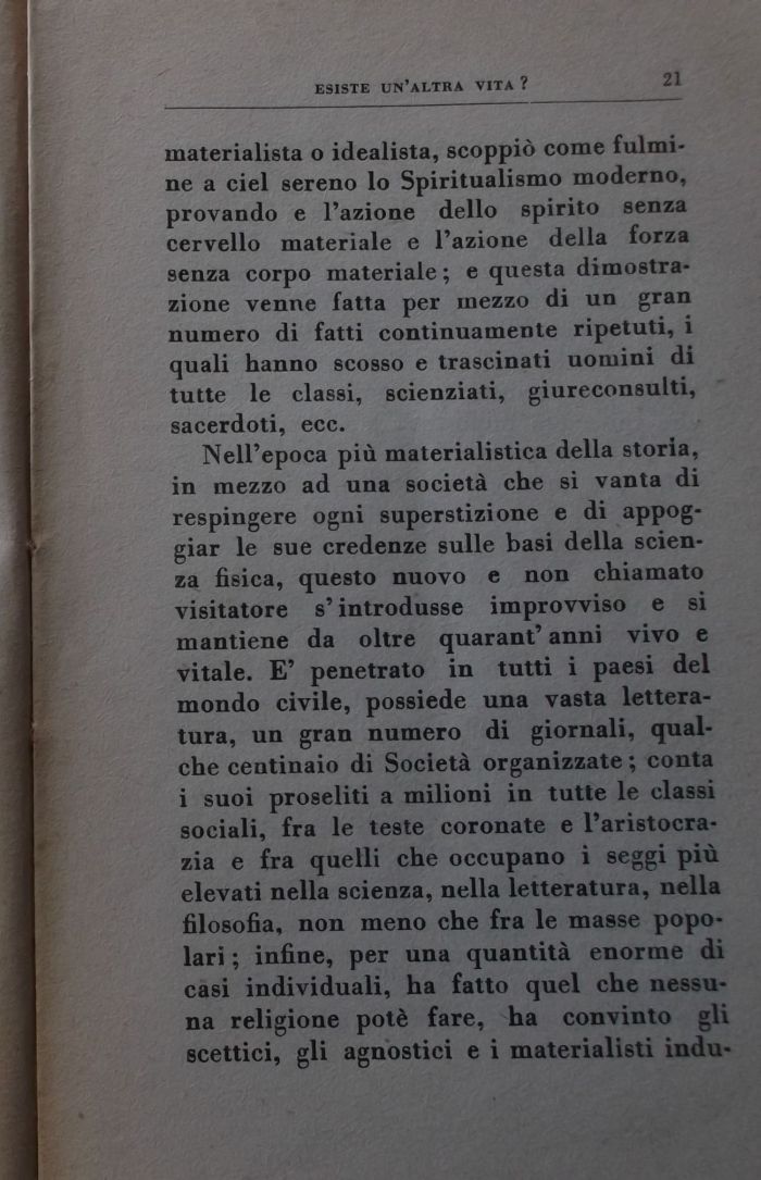 materialista o idealista, scoppiò come fulmine a ciel sereno lo Spiritualismo moderno, provando e l'azione dello spirito senza cervello materiale e l'azione della forza senza corpo materiale ; e questa dimostrazione venne fatta per mezzo di un gran numero di fatti continuamente ripetuti, i quali hanno scosso e trascinati uomini di tutte le classi, scienziati, giureconsulti, sacerdoti, ecc.