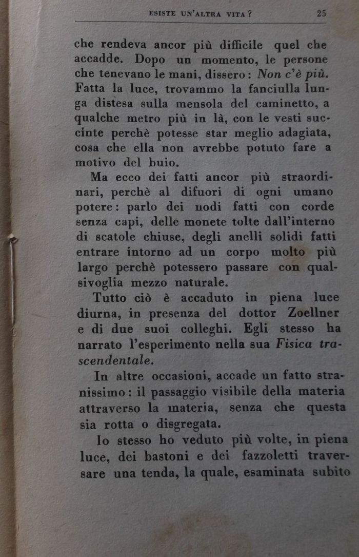 Ma ecco dei fatti ancor più straordinari, perchè al difuori di ogni umano potere : parlo dei nodi fatti con corde senza capi, delle monete tolte dall'interno di scatole chiuse, degli anelli solidi fatti entrare intorno ad un corpo molto più largo perchè potessero passare con qualsivoglia mezzo naturale.