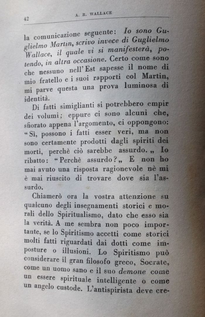 la comunicazione seguente: Io sono Guglielmo Martin, scrivo invece di Guglielmo Wallace, il quale vi si manifesterà, potendo, in altra occasione. Certo come sono che nessuno nell'Est sapesse il nome di mio fratello e i suoi rapporti col Martin, mi parve questa una prova luminosa di identità.