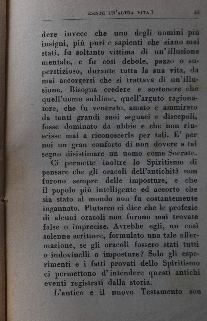 Ci permette inoltre Io Spiritismo di pensare che gli oracoli dell'antichità non furono sempre delle imposture, e che il popolo più intelligente ed accorto che sia stato al mondo non fu costantemente ingannato. Plutarco ci dice che le profezie di alcuni oracoli non furono mai trovate false o imprecise. Avrebbe egli, un così solenne scrittore, formulato una tale affermazione, se gli oracoli fossero stati tutti o indovinelli o imposture? Solo gli esperimenti e i fatti provati dello Spiritismo ci permettono d'intendere questi antichi eventi registrati dalla storia.