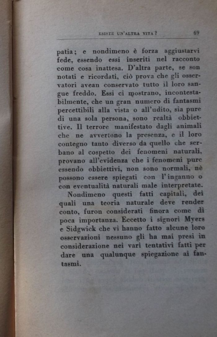 Nondimeno questi fatti capitali, dei quali una teoria naturale deTe render conto, furon considerati finora come di poca importanza. Eccetto i signori Myers e Sidgwick che vi hanno fatto alcune loro osservazioni nessuno gli ha mai presi in considerazione nei vari tentativi fatti per dare una qualunque spiegazione ai fantasmi.