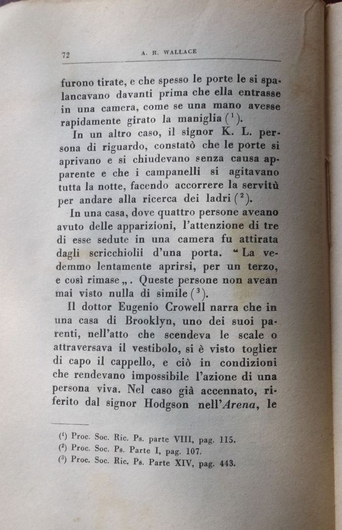 In un altro caso, il signor K. L. per-sona di riguardo, constatò che le porte si aprivano e si chiudevano senza causa apparente e che i campanelli si agitavano tutta la notte, facendo accorrere la servitù per andare alla ricerca dei ladri(2).
