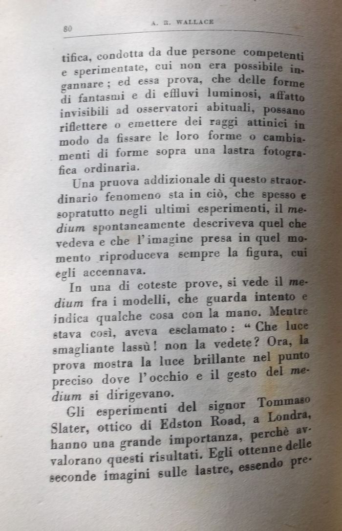 Una pruova addizionale di questo straordinario fenomeno sta in ciò, che spesso e sopratutto negli ultimi esperimenti, il medium spontaneamente descriveva quel che vedeva e che l'imagine presa in quel momento riproduceva sempre la figura, cai egli accennava.