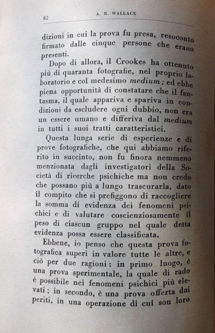Questa lunga serie di esperienze e di prove fotografiche, che qui abbiamo riferito in succinto, non fu finora nemmeno menzionata dagli investigatori della • Società di ricerche psichiche ma non credo che possano più a lungo trascurarla, dato il compito che si prefiggono di raccogliere la somma di evidenza dei fenomeni ; psichici e di valutare coscienziosamente il peso di ciascun gruppo nel quale detta evidenza possa essere classificata.