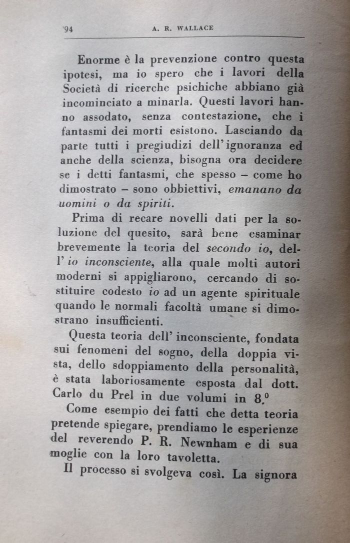 Prima di recare novelli dati per la soluzione del quesito, sarà bene esaminar brevemente la teoria del secondo io, dell' io inconsciente, alla quale molti autori moderni si appigliarono, cercando di sostituire codesto io ad un agente spirituale s quando le normali facoltà umane si dimostrano insufficienti.