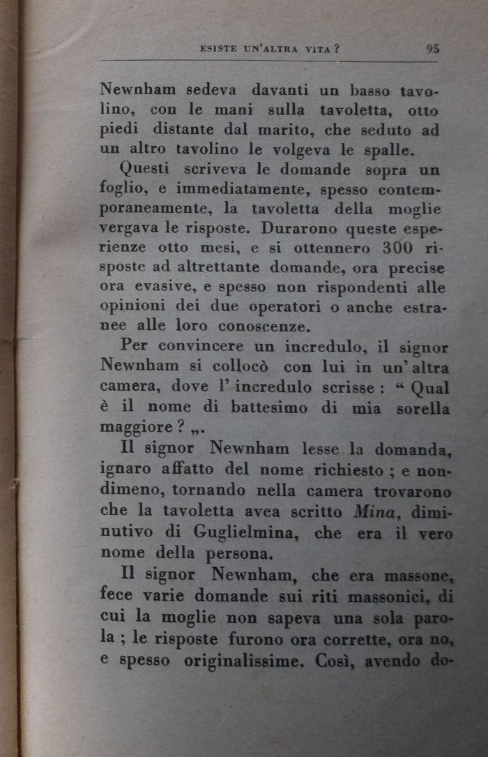 Per convincere un incredulo, il signor Newnham si collocò con lui in un1 altra camera, dove 1' incredulo scrisse : ' Qual è il nome di battesimo di mia sorella maggiore ? „.