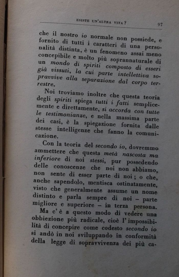 che il nostro io normale non possiede, e fornito di tutti i caratteri di una personalità distinta, è un fenomeno assai meno concepibile e molto più soprannaturale di un mondo di spiriti composto di esseri già vissuti, la cui parte intellettiva so-pravvive alla separazione dal corpo terrestre»