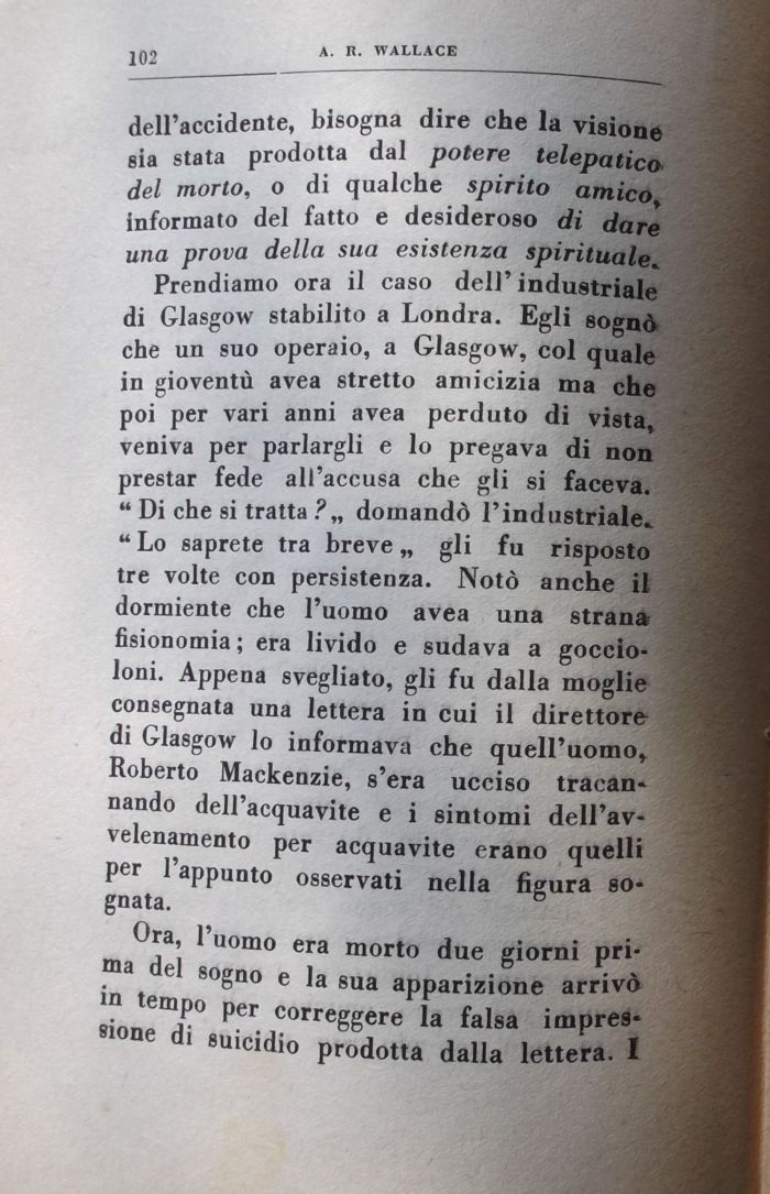 dell'accidente, bisogna dire che la visionò sia stata prodotta dal potere telepatica del morto, o di qualche spirito amico> informato del fatto e desideroso di dare una prova della sua esistenza spirituale».