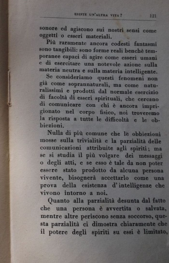 Se consideriamo questi fenomeni non già come soprannaturali, ma come naturalissimi e prodotti dal normale esercizio di facoltà di esseri spirituali, che cercano di comunicare con chi è ancora imprigionato nel corpo fisico, noi troveremo la risposta a tutte le difficoltà e le obbiezioni.
