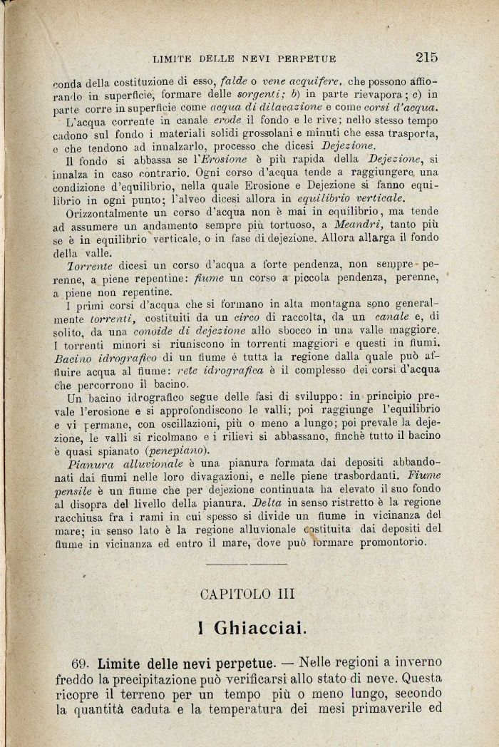 L'acqua corrente in canale erode il fondo e le rive ; nello stesso tempo cadono sul fondo i materiali solidi grossolani e minuti che essa trasporta, c che tendono ad innalzarlo, processo che dicesi Dejezione.