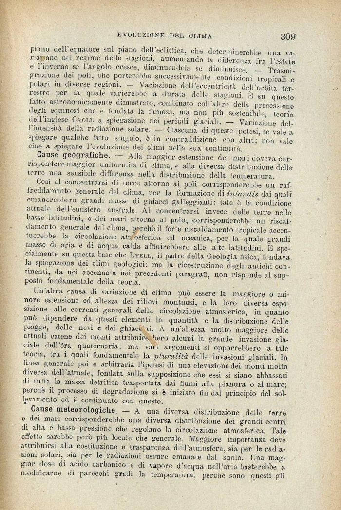 Cause geografiche. Alla maggior estensione dei mari doveva corrispondere maggior uniformità di clima, e alla diversa distribuzione delie-terre una sensibile differenza nella distribuzione della temperatura.