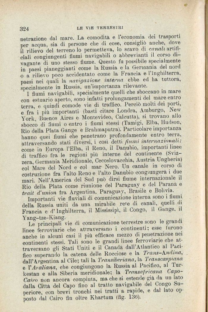 Importanti vie fluviali di comunicazione interna sono i fiumi della Russia uniti da una mirabile rete di canali, quelli di Francia e d'Inghilterra, il Mississipì, il Congo, il Gange, il Yang-tze-Kiang.