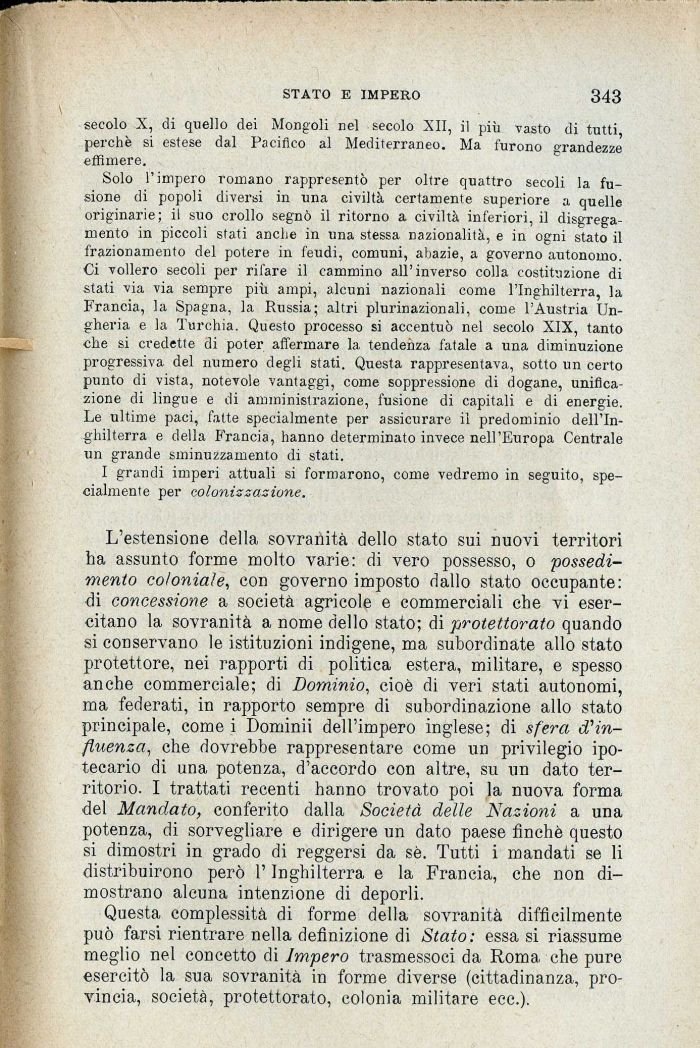 Questa complessità di forme della sovranità diffìcilmente può farsi rientrare nella definizione di Stato: essa si riassume meglio nel concetto di Impero trasmessoci da Roma che pure esercitò la sua sovranità in forme diverse (cittadinanza, provincia, società, protettorato, colonia militare ecc.).
