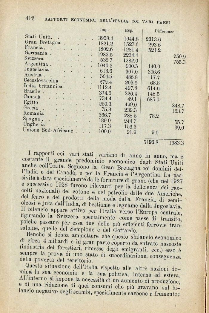 412 RAPPORTI ECONOMICI DELl/lTALIA COI VARI PAESI