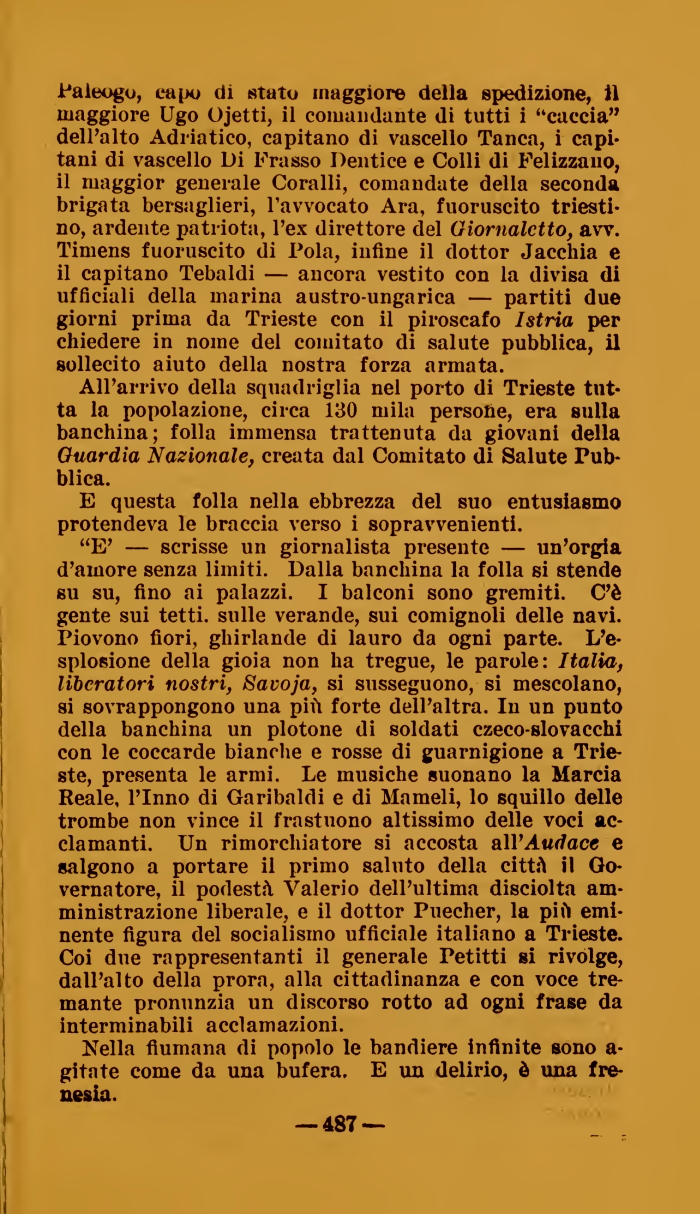 Ugo Ojetti Adriatico Tanca Di Frasso Dentice Colli Felizzaiio Coralli Ara Giornaletto Fola Jacchia Tebaldi Trieste Istria Trieste Guardia Nazionale Comitato Salute Pubblica Italia Sauoja Trieste Marcia Reale Inno Garibaldi Mameli Audace Governatore Valerio Puecher Trieste Petitti