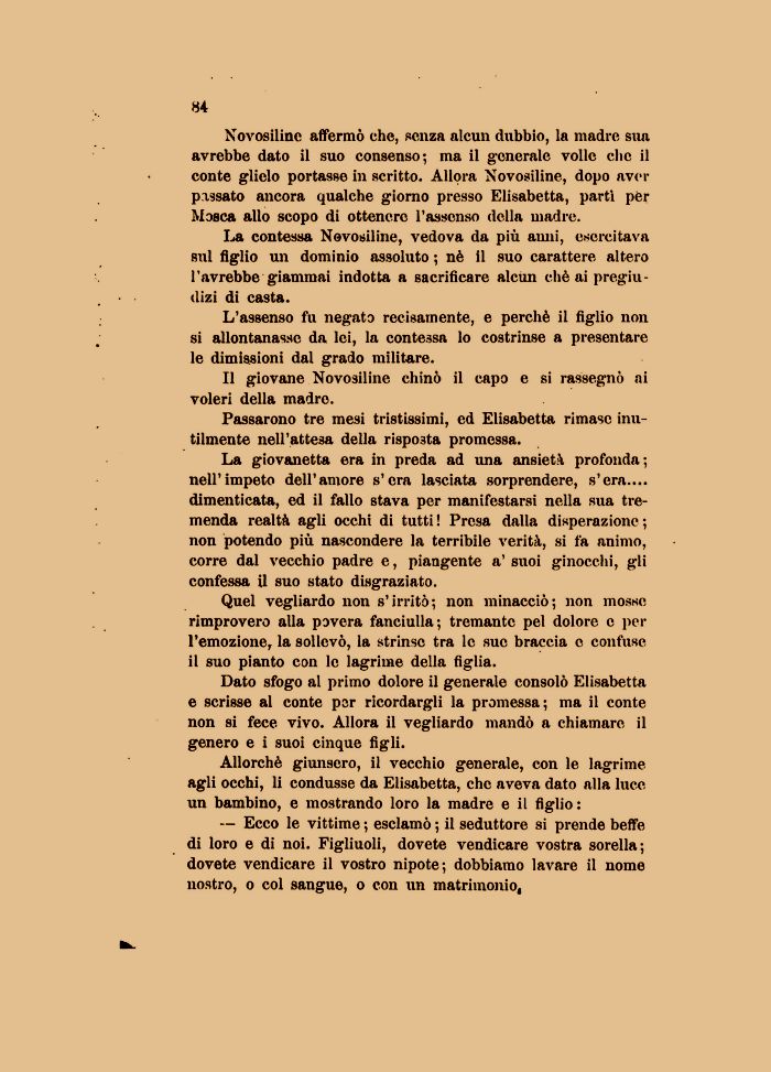 — Ecco le vittime ; esclamò ; il seduttore si prende beffe di loro e di noi. Figliuoli, dovete vendicare vostra sorella; dovete vendicare il vostro nipote; dobbiamo lavare il nome nostro, o col sansrue, o con un matrimonio.