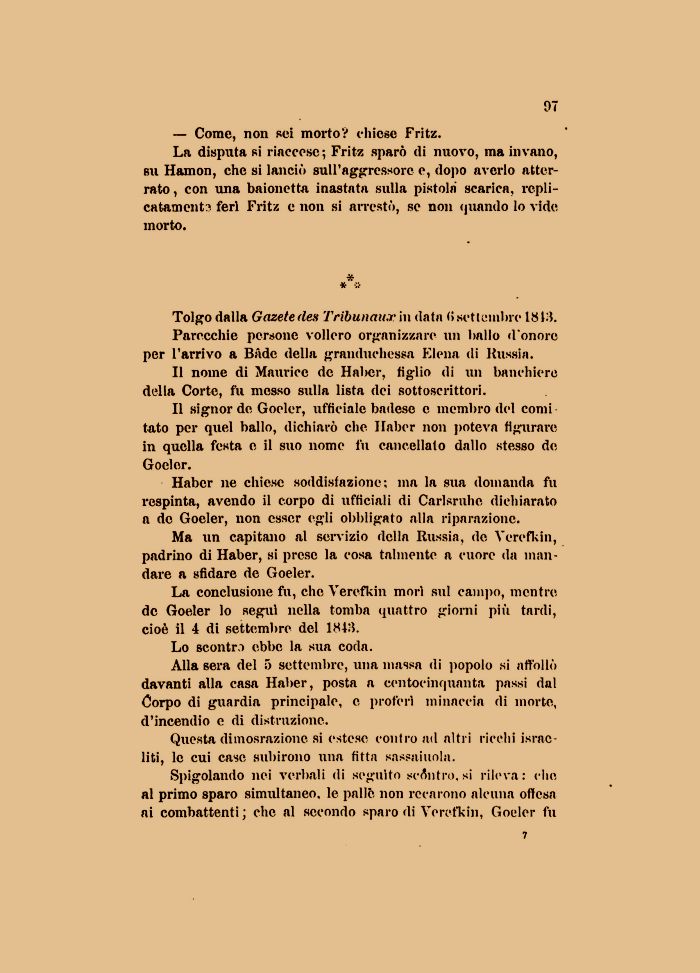 Il signor de Goeler, ufficiale bailese e membro del comi tato per quel ballo, dichiarò che Haber non poteva figurare in quella festa e il suo nome fu cancellalo dallo stesso de Goelor.