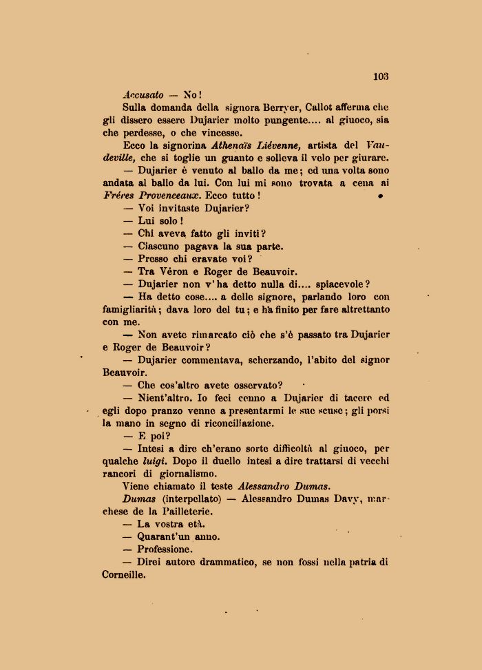 Sulla domanda della signora Berryer, Callot afferma che gli dissero essere Dujarier molto pungente.... al giuoco, sia che perdesse, o che vincesse.