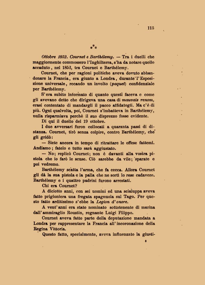 Ottobre 1852. Cournet e Barthélemy. — Tra i duelli che maggiormente commossero l'Inghilterra, s'ha da notare quello accaduto, nel 1852, tra Cournet e Barthélemy.