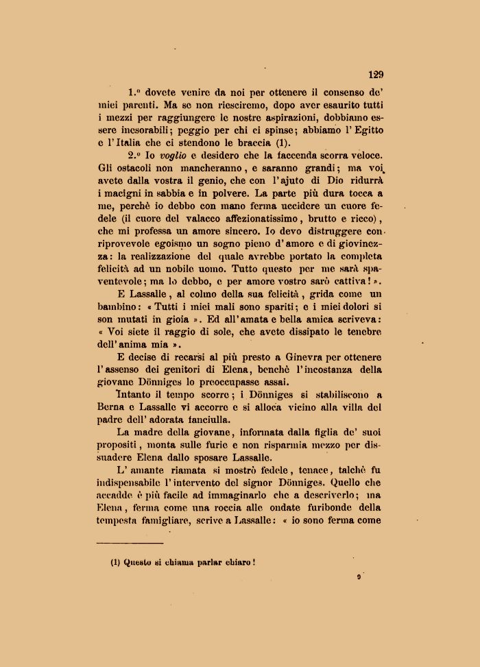 1. dovete venire da noi per ottenere il consenso de' miei parenti. Ma so non ricscireino, dopo aver esaurito tutti i mezzi per raggiungere le nostre aspirazioni, dobbiamo essere inesorabili; peggio per chi ci spinse; abbiamo l'Egitto e l'Italia che ci stendono le braccia (1).