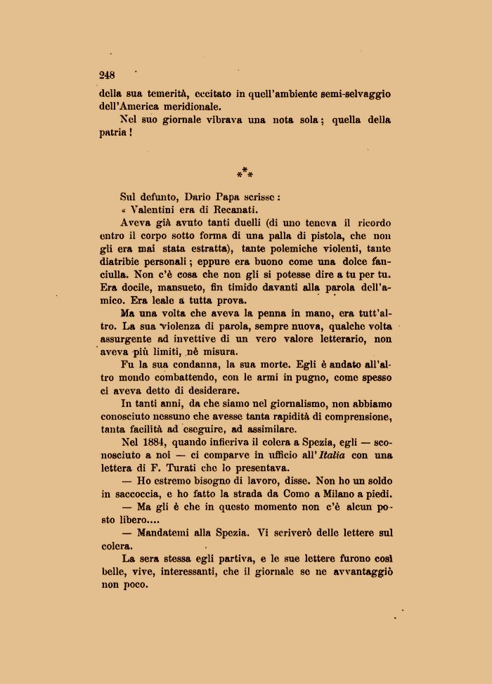 Nel 1884, quando infieriva il colera a Spezia, egli — sconosciuto a noi — ci comparve in ufficio a\V Italia con una lettera di F. Turati che lo presentava.