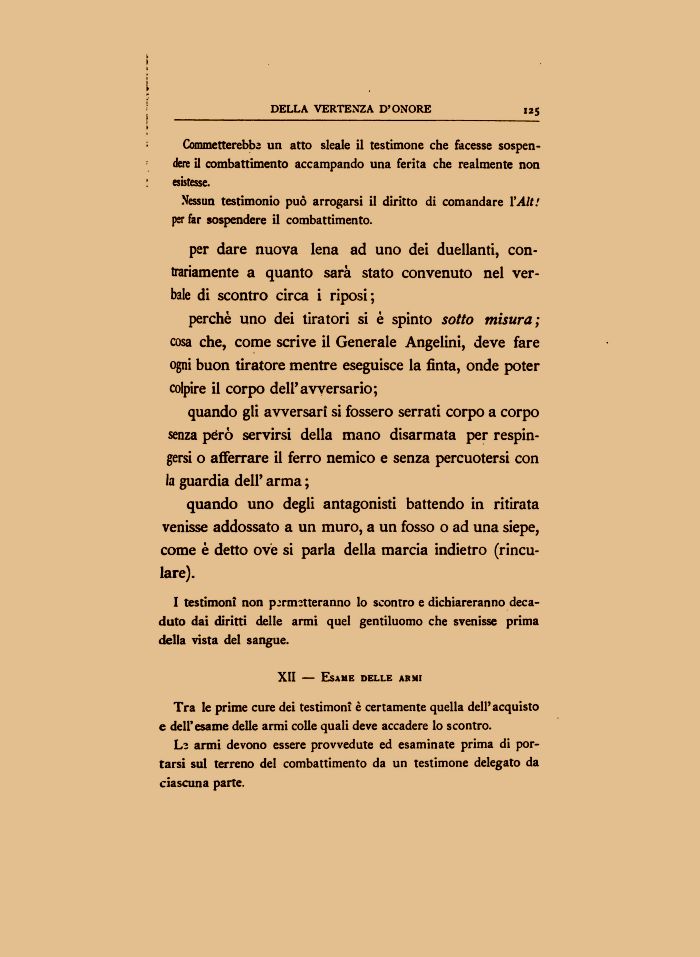 DELLA VERTENZA D'ONORE 125