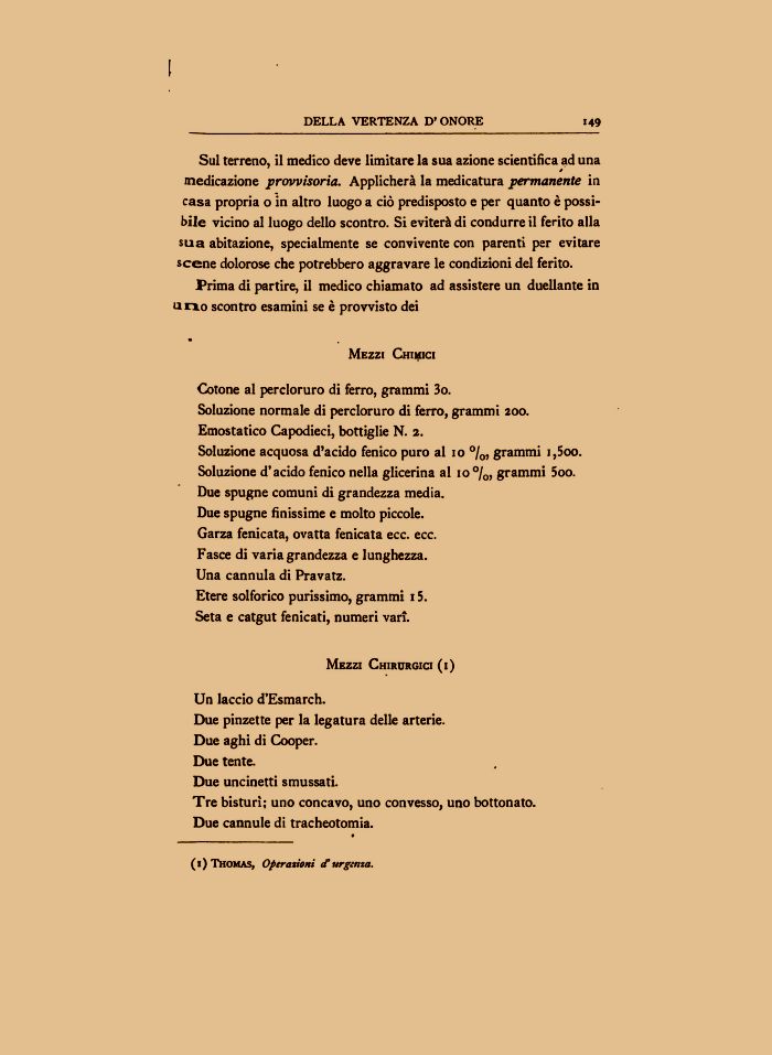 Prima di partire, il medico chiamato ad assistere un duellante in uno scontro esamini se è provvisto dei