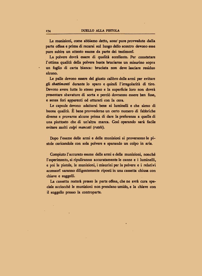Le munizioni, come abbiamo detto, sono' pure provvedute dalla parte offesa e prima di recarsi sul luogo dello scontro devono esse pure subire un attento esame da parte dei testimoni.