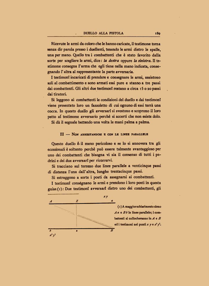 ( 1 ) A maggiorschiarimento sieno A a e Bb le linee parallele; i combattenti si collocheranno in A e B ' ¦ -'- . . ed i testimoni nei punti x y e x' )¦'.