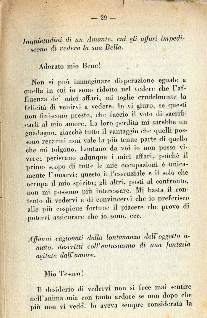 Il desiderio di vedervi non si fece mai sentire nell'anima mia con tanto ardore se non dopo che più non vi vedo. Io aveva sempre considerata la