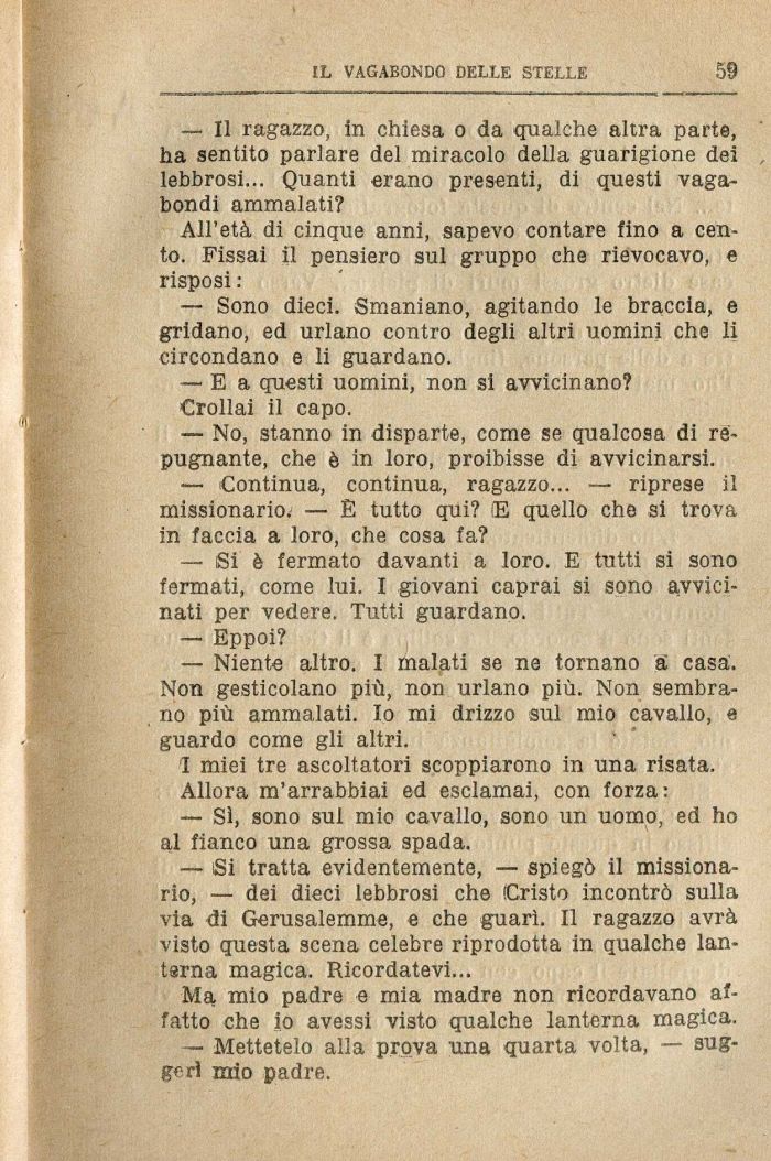 — Si tratta evidentemente, — spiegò il missionario, — dei dieci lebbrosi che Cristo incontrò sulla via di Gerusalemme, e che guarì. Il ragazzo avrà visto questa scena celebre riprodotta in qualche lanterna magica. Ricordatevi...