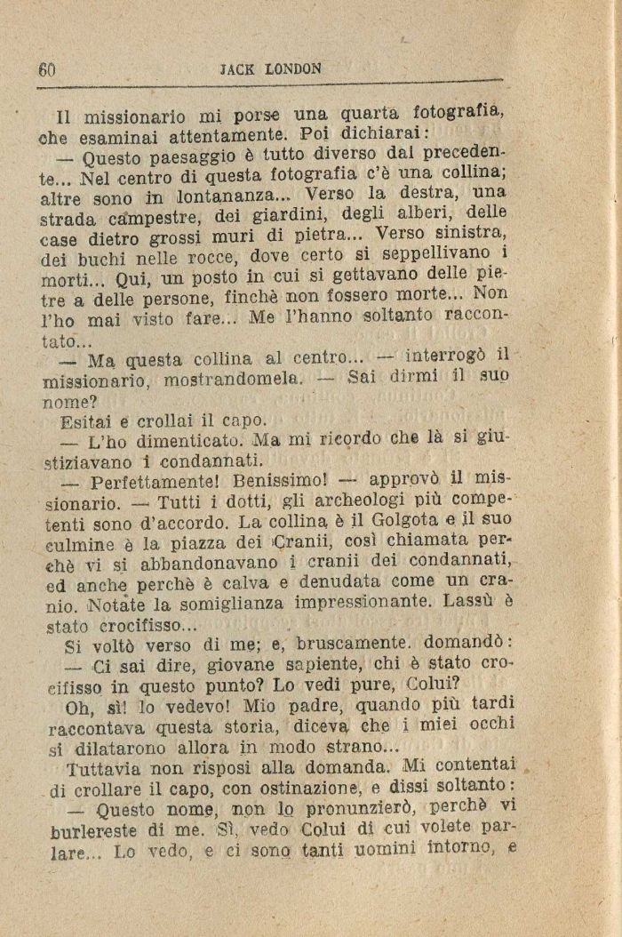 — Perfettamente! Benissimo! — approvò il missionario. — Tutti i dotti, gli archeologi più competenti sono d'accordo. La collina è il Golgota e il suo culmine è la piazza dei Granii, cosi chiamata perchè vi si abbandonavano i cranii dei condannati, ed anche perchè è calva e denudata come un cranio. Notate la somiglianza impressionante. Lassù è stato crocifisso...