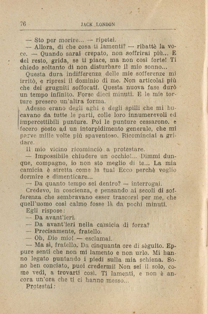 — Allora, di che cosa ti lamenti? — ribattè la voce. — Quando sarai crepato, non soffrirai più... E del resto, grida, se ti piace, ma non così forte! Ti chiedo soltanto di non disturbare il mio sonno...