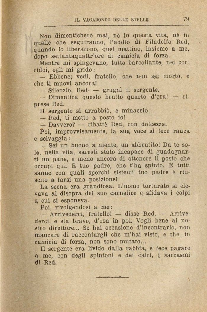 Non dimenticherò mai, nè in questa vita, nè in quelle che seguiranno, l'addio di Filadelfo Red, quando lo liberarono, quel mattino, insieme a me, dopo settantaquattr'ore di camicia di forza.