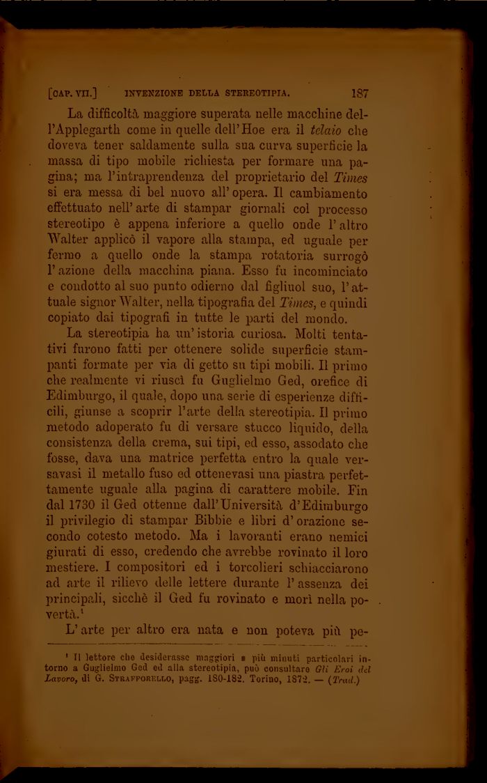 1 II lettore che desiderasse maggiori • più minuti particolari intorno a Guglielmo Ged ed alla stereotipia, può consultare Gli Eroi del Lavoro, di G. Strafforello, pagg. 1S0-I81 Torino, 1S72. — (Trad.)