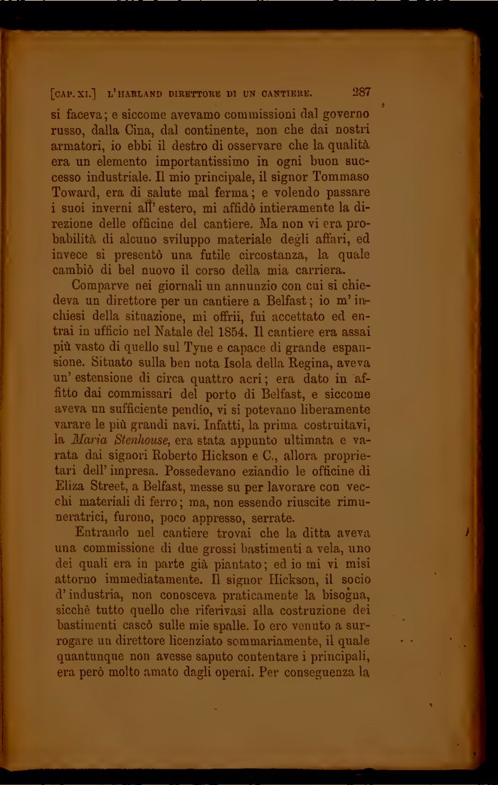 [CAP. XI.] 1.' IIARLAND DIRETTORE DI UN CANTIERE. 287