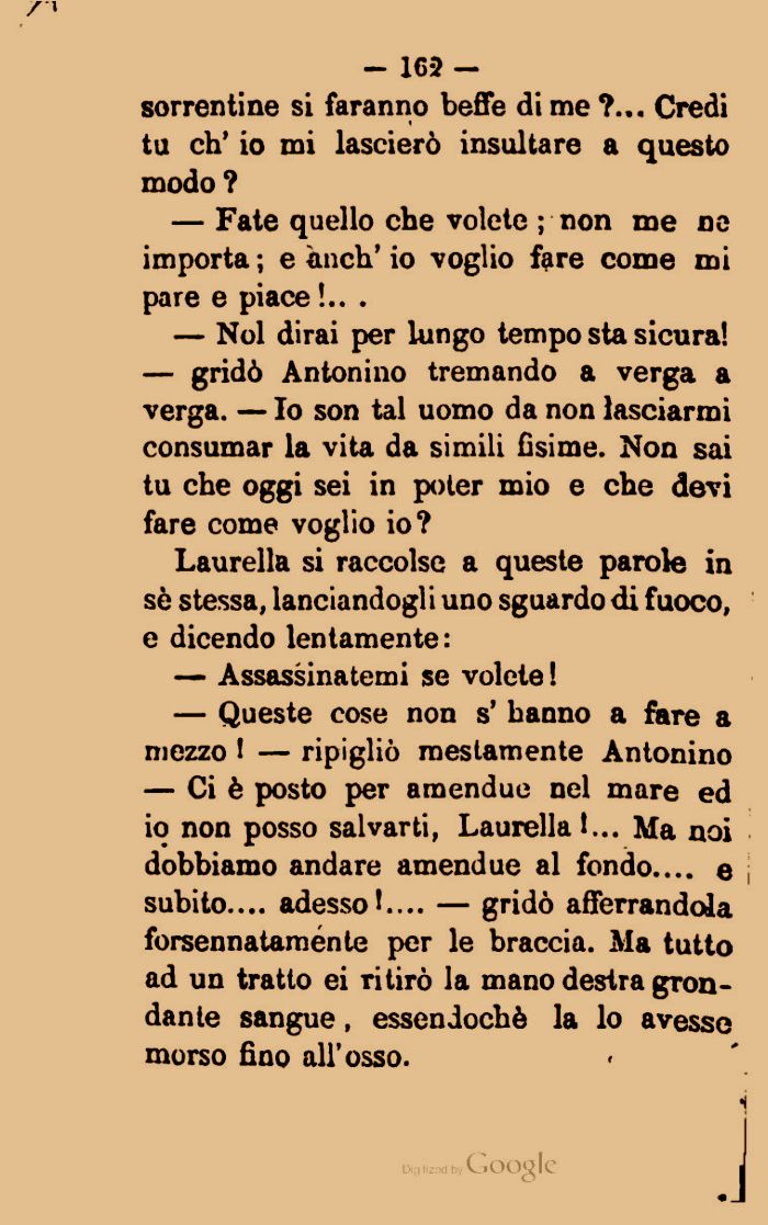 sorrentine si faranno beffe di me ?... Credi tu eh' io mi lascierò insultare a questo modo ?
