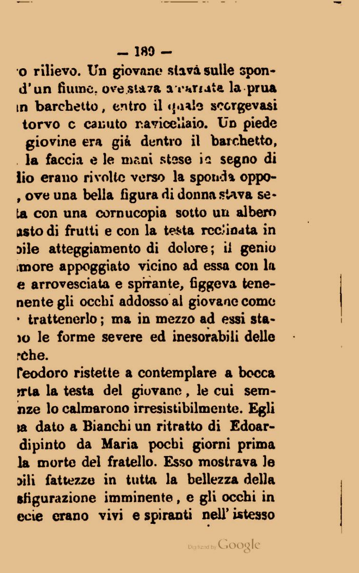 Teodoro ristette a contemplare a bocca irta la testa del giovano, le cui sem-nze lo calmarono irresistibilmente. Egli ta dato a Bianchi un ritratto di Edoar-dipinto da Maria pochi giorni prima la morte del fratello. Esso mostrava le jili fattezze in tutta la bellezza della sfigurazione imminente, e gli occhi in eoe erano vivi e spiranti nell' is tesso