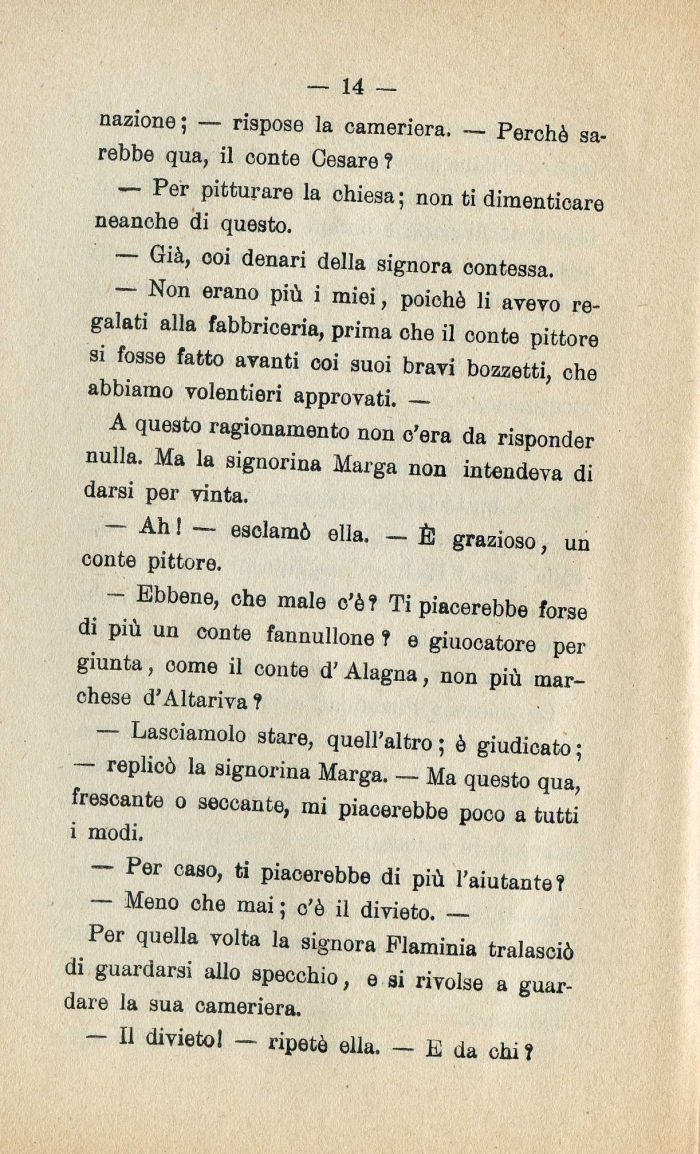 Per quella volta la signora Flaminia tralasciò di guardarsi allo specchio| e ai rivolse a guardare la sua cameriera.