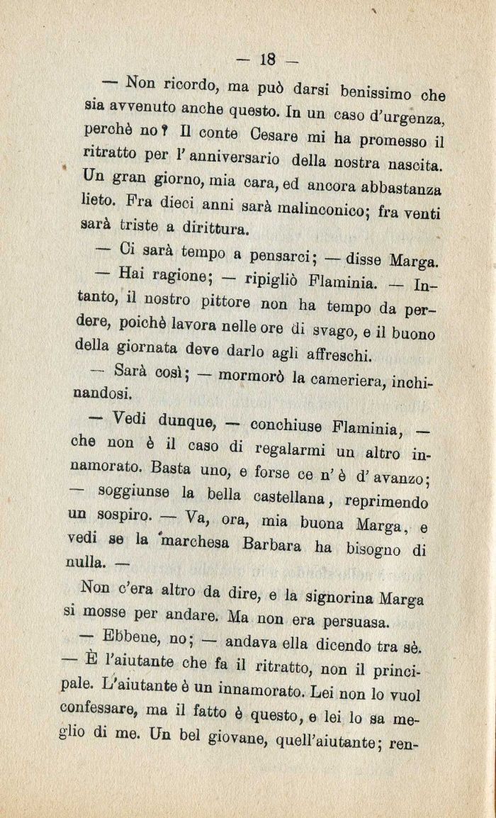 — Vedi dunque| — con chiuse Flaminia| — che non è il caso di regalarmi un altro innamorato. Basta uno| e forse ce n' è d' avanzo ;