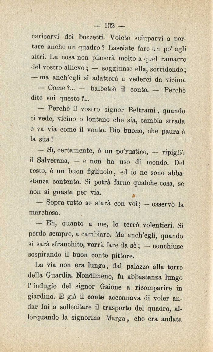 — Sì| certamente| è un po'rustico| — ripigliò il Salverana| — e non ha uso di mondo. Del resto| è un buon figliuolo| ed io ne sono abbastanza contento. Si potrà farne qualche cosa| se non si guasta per via. „