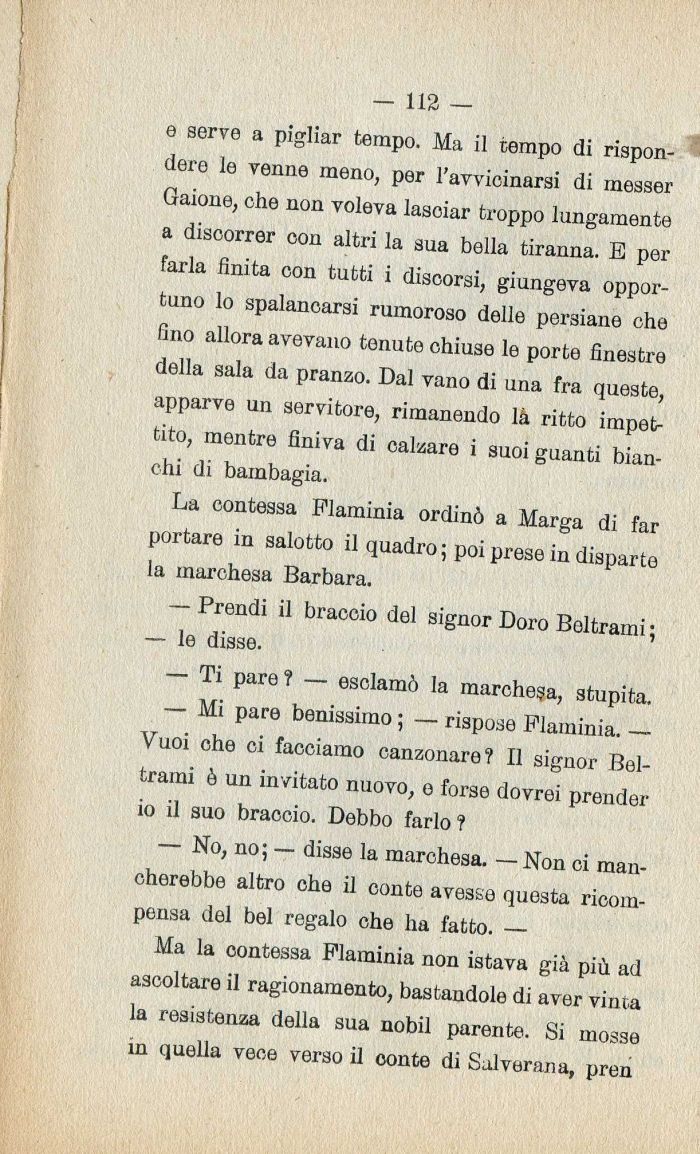 — Mi pare benissimo ; — rispose Flaminia. — Vuoi che ci facciamo canzonare? Il signor Beltrami è un invitato nuovo| e forse dovrei prender io il suo braccio. Debbo farlo ?