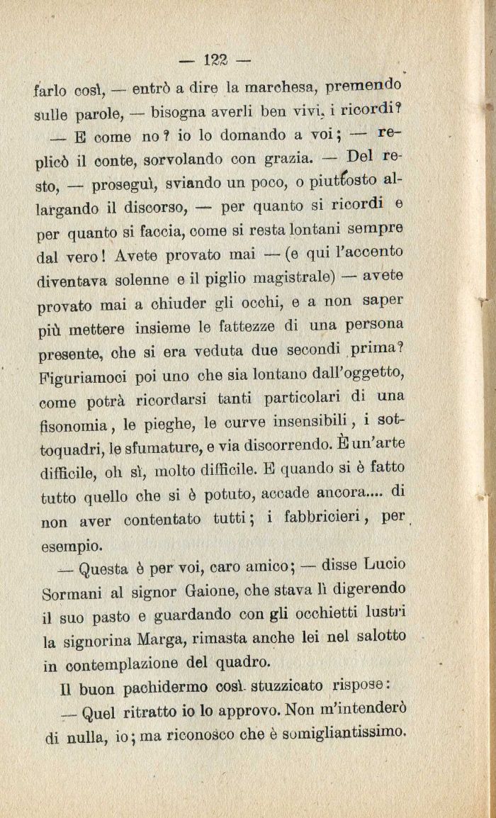 — Questa è per voi| caro amico; — disse Lucio Sormani al signor Gaione| ohe stava lì digerendo il suo pasto e guardando con gli occhietti lustri la signorina Marga| rimasta anche lei nel salotto in contemplazione del quadro.