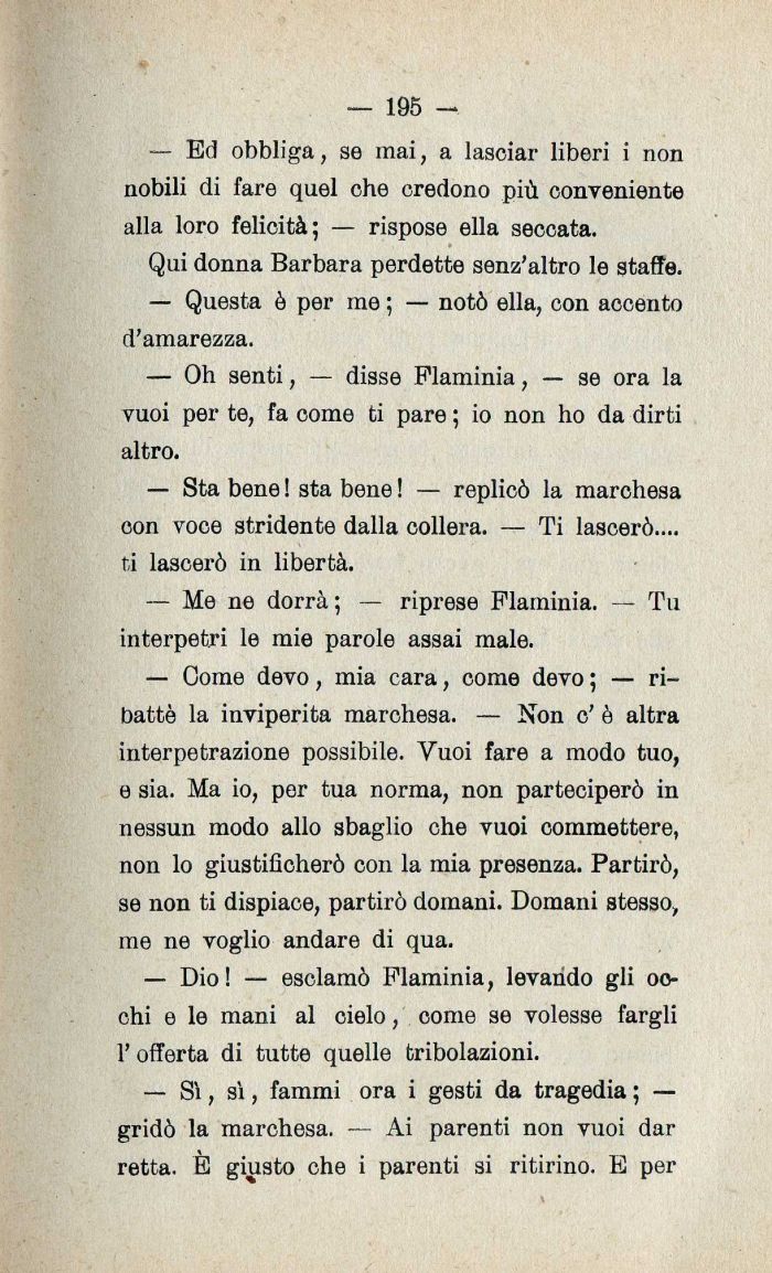 — Oh senti| — disse Flaminia| — se ora la vuoi per te| fa come ti pare ; io non ho da dirti altro.