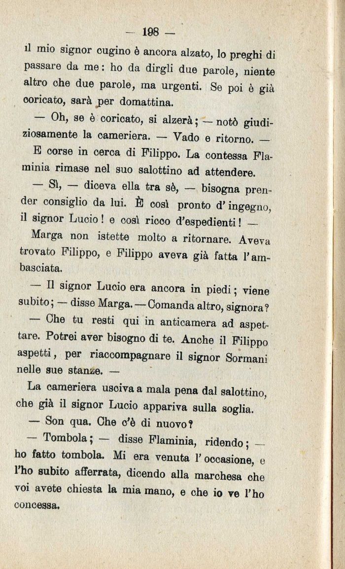 — Tombola; — disse Flaminia| ridendo; — ho fatto tombola. Mi era venuta 1' occasione| e l'ho subito afferrata| dicendo alla marchesa che voi avete chiesta la mia mano| e che io ve l'ho concessa.