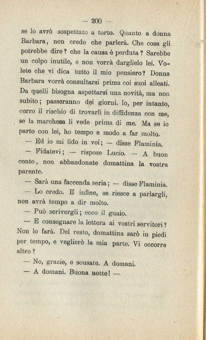 — Fidatevi ; — rispose Lucio. — A buon conto| non abbandonate domattina la vostra parente.