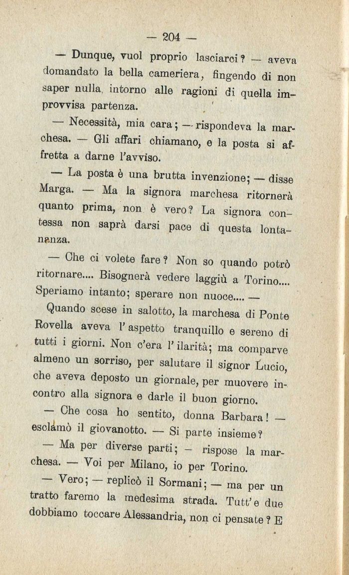 — La posta è una brutta invenzione; — disse Marga. — Ma la signora marchesa ritornerà quanto prima| non è vero? La signora contessa non saprà darsi pace di questa lontananza.