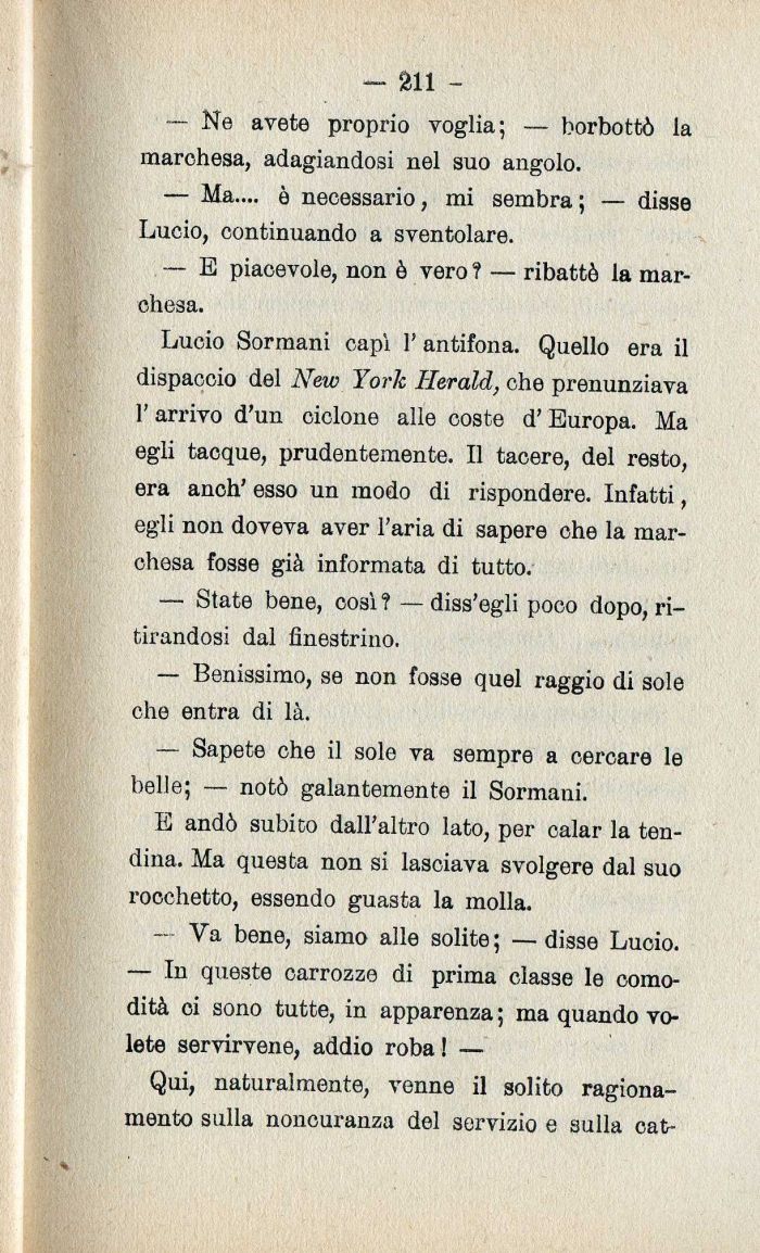 — Va bene| siamo alle solite; —disse Lucio. — In queste carrozze di prima classe le comodità ci sono tutte| in apparenza ; ma quando volete servirvene| addio roba ! —