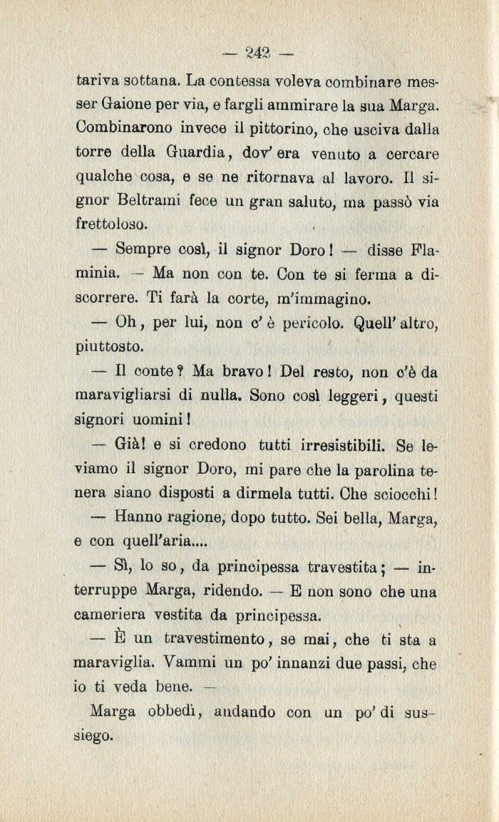 — Sempre cosi| il signor Doro ! — disse Flaminia. — Ma non con te. Con te si ferma a discorrere. Ti farà la corte| m'immagino.