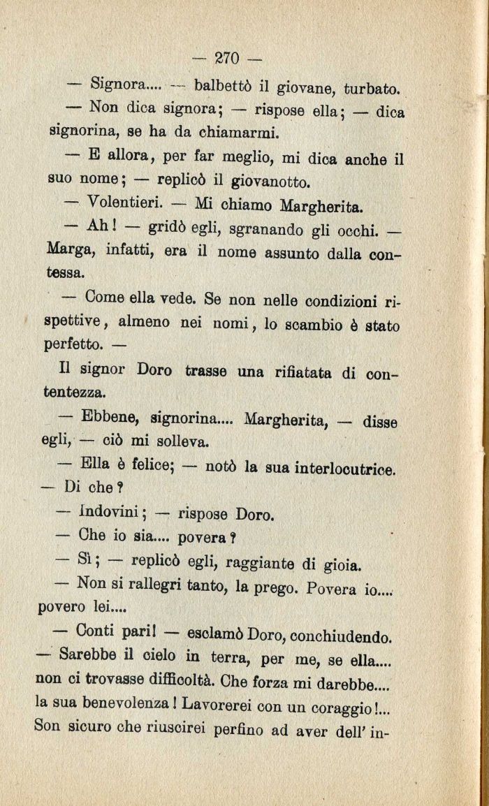 — Ah ! — gridò egli| sgranando gli occhi. — Marga| infatti| era il nome assunto dalla contessa.